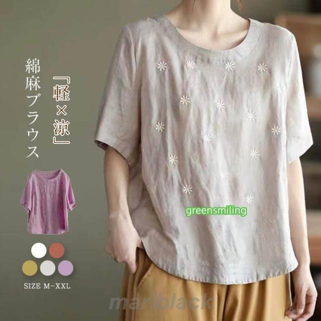 キーワード:ブラウス レディース シャツブラウス 春夏秋 コットン 半袖 半袖ブラウス 柄ブラウス ラウンドネック クルーネック トップス 半袖トップス 刺繍 花刺繍 綿 春 夏 秋 シンプル 可愛い 通勤 通学 日常 ディリー ナチュラル 着回し 着痩せ 着心地 おうち時間 お出かけ 外出