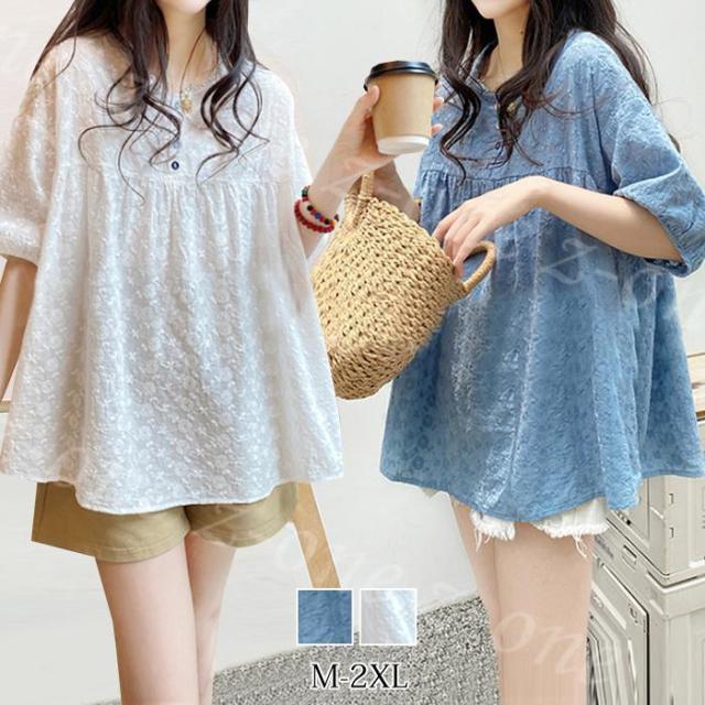 ブラウス 半袖 花柄レース シャツ トップス レディース 新作 春服 夏服 ゆったり 無地 薄手 柔らかい レースブラウス シャツブラウス Tシャツ