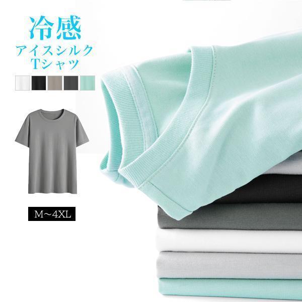 Tシャツ メンズ 冷感 アイスシルク 夏 半袖 クルーネック 涼しい 接触冷感 ティーシャツ