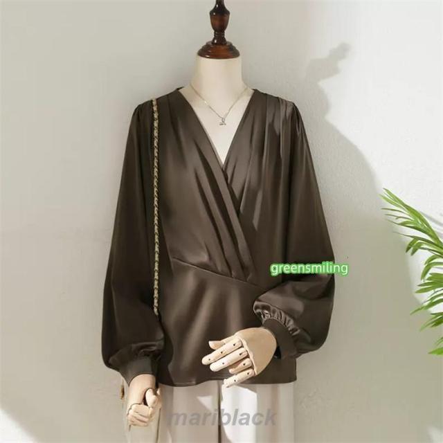 ブラウス シワになりにくい レディース トップス シャツ シャツブラウス 白ブラウス 長袖 長そで Vネック カシュクール ゆったり 大きいサイズ 秋 Vネックブラ