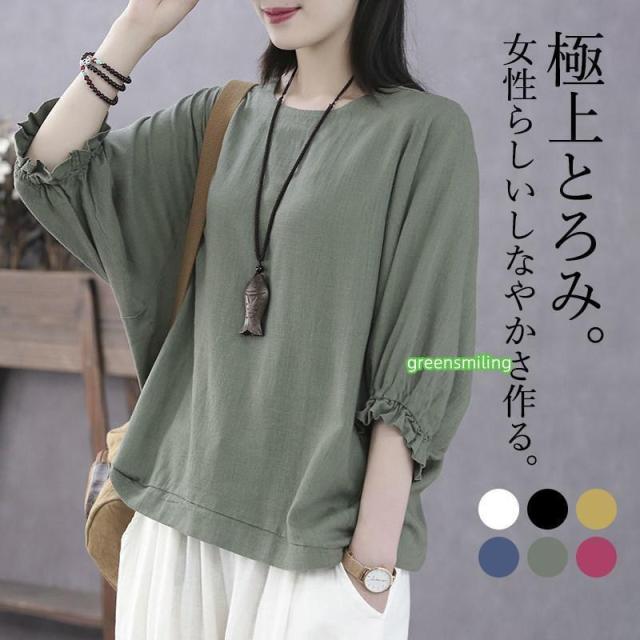 ブラウス レディース 半袖 5分袖 シャツ ドルマンスリーブ 春 夏 プルオーバー 丸ネック ゆったり 通勤 母の日 涼しい ルームウェア