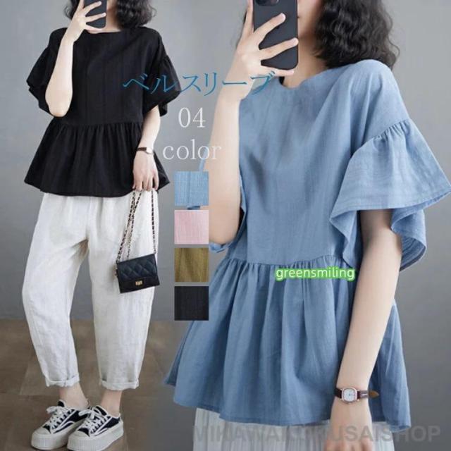 フリル袖 ブラウス リネンブラウス レディース トップス ブラウス 長袖ブラウス おしゃれ レディースブラウス
