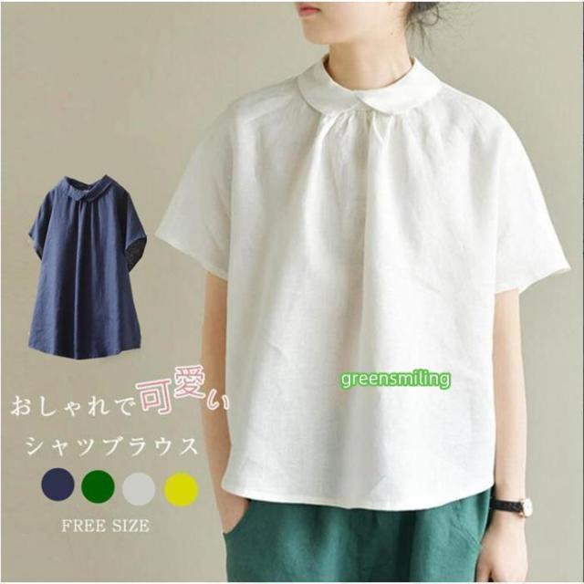リネンブラウス レディース ブラウス 半袖 フレンチスリーブ トップス プルオーバー カジュアル シャツ ブラウス かわいい 可愛い 体型カバー 無地 夏 シンプル 大人可愛い ナチュラル 森ガール 30代 40代 50代