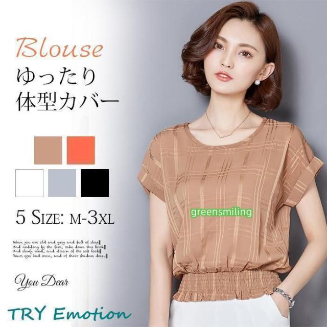 ブラウス 半袖 レディース おしゃれ トップス シフォンブラウス 大きいサイズ オフィス 通勤 ゆったり 体型カバー 夏 Tシャツプルオーバー 30代 40代 50代