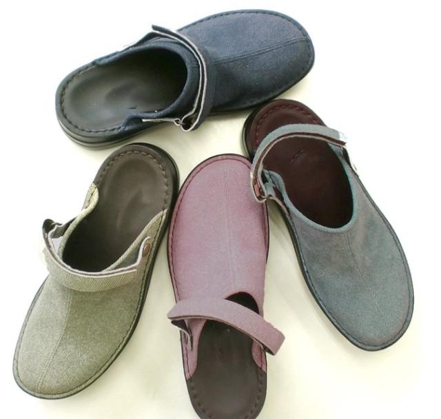日本製 本革 デニム加工 サボサンダル サンダル 幅広 3e 外反母趾 カジュアルサンダル 2way ホッコリサボ スリッポン ゴード革 山羊革 大人女子 おしゃれ