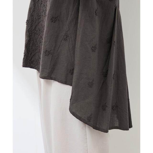 ・Aラインに広がったシルエットと後ろ下がりのデザインで可愛く体型カバーが叶う。