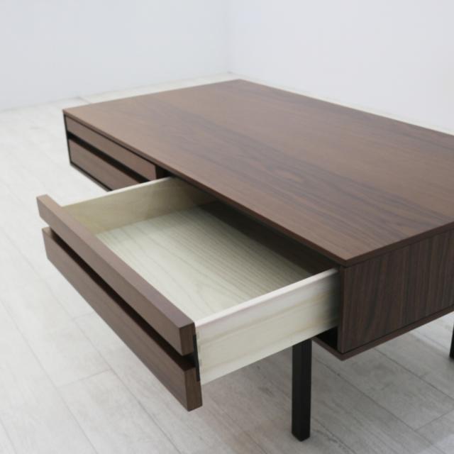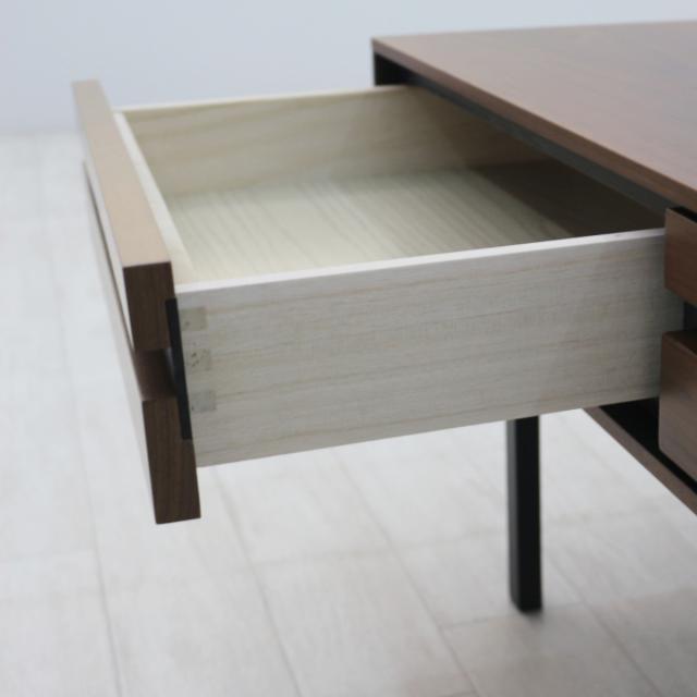 テーブルには引き出しが2杯付いています。リモコンや筆記用具、眼鏡などのテーブルの周りで使う物を収納しておくのに便利です。