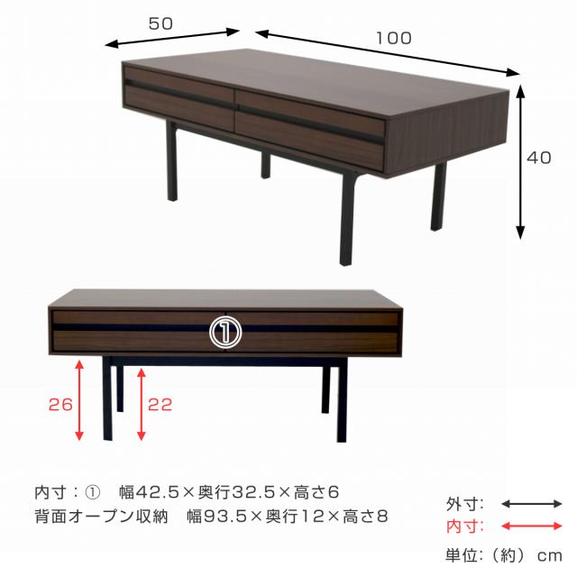 《 オープンスペース 引出し リモコン 雑誌 ノートPC 収納付き 小物 整理 整頓 インテリア 家具 ウッドテーブル ブラウン 茶 グレー オシャレ お洒落 奥行50 幅100 cm 桐材 シンプル ナチュラル 》