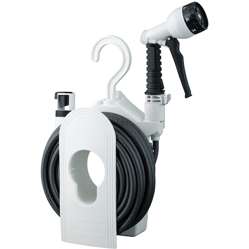 ●狭い場所での散水や、ベランダでの水やりに便利なハンガータイプのコンパクトリールです。