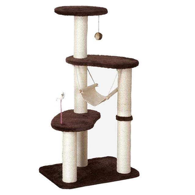 ・上下運動が楽しい3段タイプ! ・ハンモックはお気に入りの場所! 狭い所が好きな猫の本能を考えたスペースをデザイン。 ・はじけるゴム付きモコモコボールとウサギ毛製のバネ玩具でストレス発散! ・モダンでシックなカラーとデザイン。 4976555841329