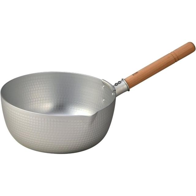 ■材質 本体:アルミニウム(槌目加工)/内面・外面:硫酸アルマイト加工/取っ手:天然木