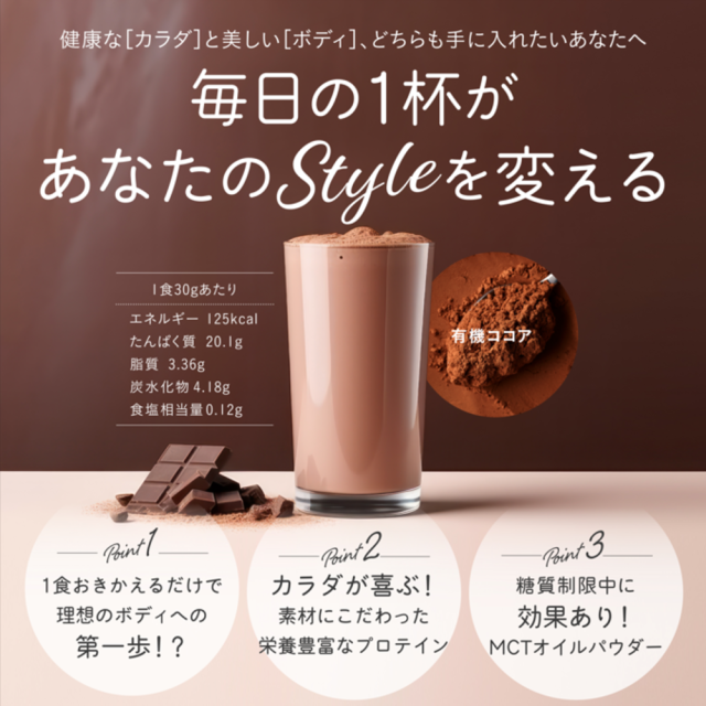 ■原材料名:ココア味:乳清たんぱく濃縮物(フランス製造)、有機カカオパウダー、MCTオイルパウダー加工品/甘味料(ステビア)(原材料の一部に乳製品を含む)