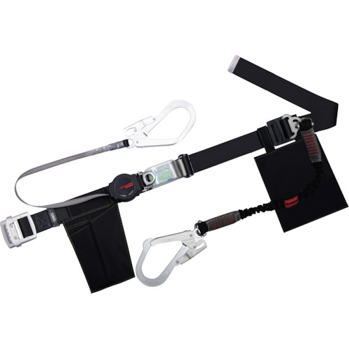 TSUYORON 胴ベルト型墜落制止用器具(巻取タイプ)補助ロープ2丁掛け仕様 ロック機構付きワン ハンドリトラ+伸縮式補助ロープ 黒 Lサイズ 幅50MM×長さ1400MM TBORL2593NVBLKBKLBP 保護具 墜落(代引不可)【