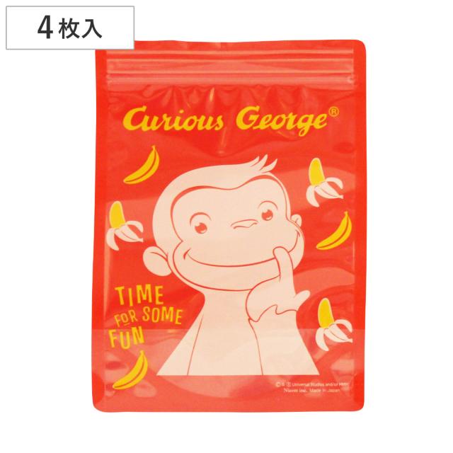 保存袋 おさるのジョージ ストレージバッグ 4枚入り ( 小分け袋 チャック付き袋 ジッパー袋 食品保存 食品保存袋 日本製 保存 袋 マチ付き ジッパー付き チャック付き 小物入れ 自立 キッチン 旅行 ラッピング キャラクター )