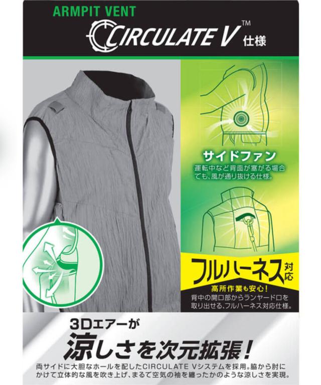 脇から肘にかけて立体的な風を吹き上げ、まるで空気の袖を纏ったかのような涼しさを実現