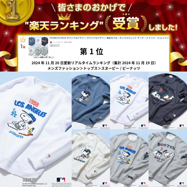 PEANUTS MLB オリジナルデザイン オリジナルデザイン 裏起毛クルーネックスウェット ヤンキース ドジャース レッドソックス