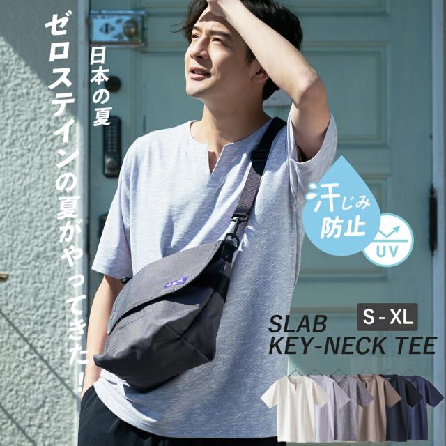 汗目立たない ゼロステイン ZERO STAIN 汗染み防止 Tシャツ スラブ キーネック メンズ レディース 男女兼用 トップス 半袖 無地 おしゃれ 吸水速乾 人気 tシャツ ポケT 機能 快適 インナー 肌着としても 撥水加工 UVカット 防汚加工 紫外線防止