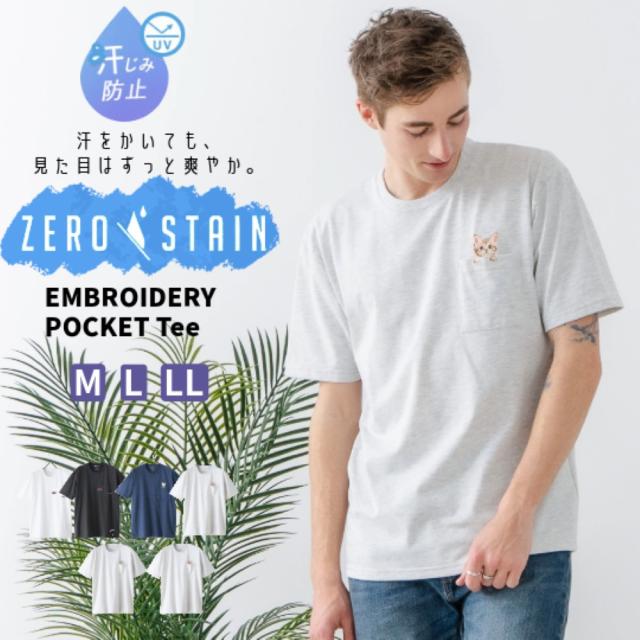 ZERO STAIN 汗染み 目立ちにくい 胸ポケット アニマル 刺繍Tシャツ 汗 対策 ゼロステイン 汗じみ 防止 メンズ UV 男女兼用 トップス 半袖 おしゃれ 吸水速乾 人気 無地 tシャツ 機能 快適 インナー 肌着としても 撥水加工 UVカット 防汚加工 紫外線防止 簡単コーデ