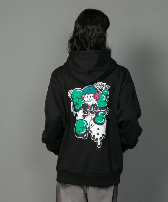 裏起毛 オーバーサイズ 発泡プリント フルジップスウェットパーカー