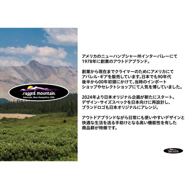 アメリカのニューハンプシャー州にて1970年代にスタートしたアウトドアブランド。 当時、クライマーのためにアメリカにてアパレル・ギアを販売していました。 日本でも90年代後半から00年初頭にかけて、当時のインポートショップやセレクトショップにて人気を 博していましたが、その後残念ながらブランドは消滅しました。 2024年より日本オリジナル企画で新たなブランドとしてスタートしました。 デザイン・サイズスペックを日本向けに再設計し、ブランドロゴも日本オリジナルにアレンジ。 アウトドアブランドながら日常にも使いやすいデザインと快適な生活を送る手助けとなる高い機能性を 有した商品群が特徴です。
