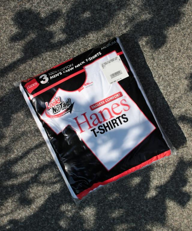 Hanesを象徴する鉄板アイテム「3P-T」の赤パック。コットン100%で柔らかな肌触りが持ち味の「ならでは」の雰囲気あるTシャツです。