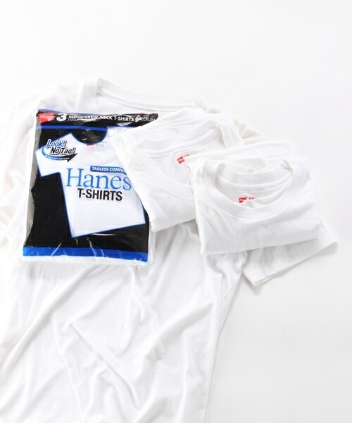 Hanesのマルチパックを代表するアイテム「3P-T」の青パック。綿とポリエステルの混紡で型崩れしにくく乾きやすい、ドライな肌触りが特長のTシャツです。