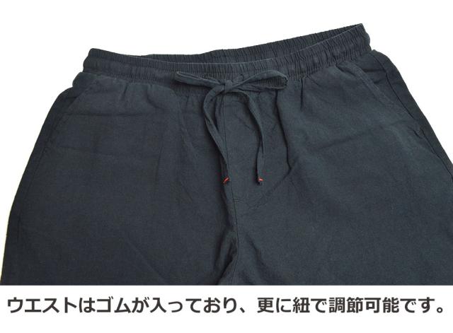 ■夏でもサラリとした着心地が自慢の涼しい綿麻素材のハーフパンツです。