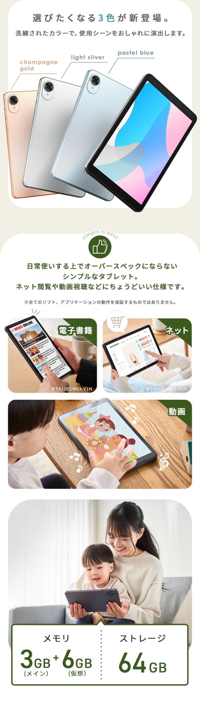 オーバースペックにならず、日常使いにちょうどいいシンプルなタブレットです。