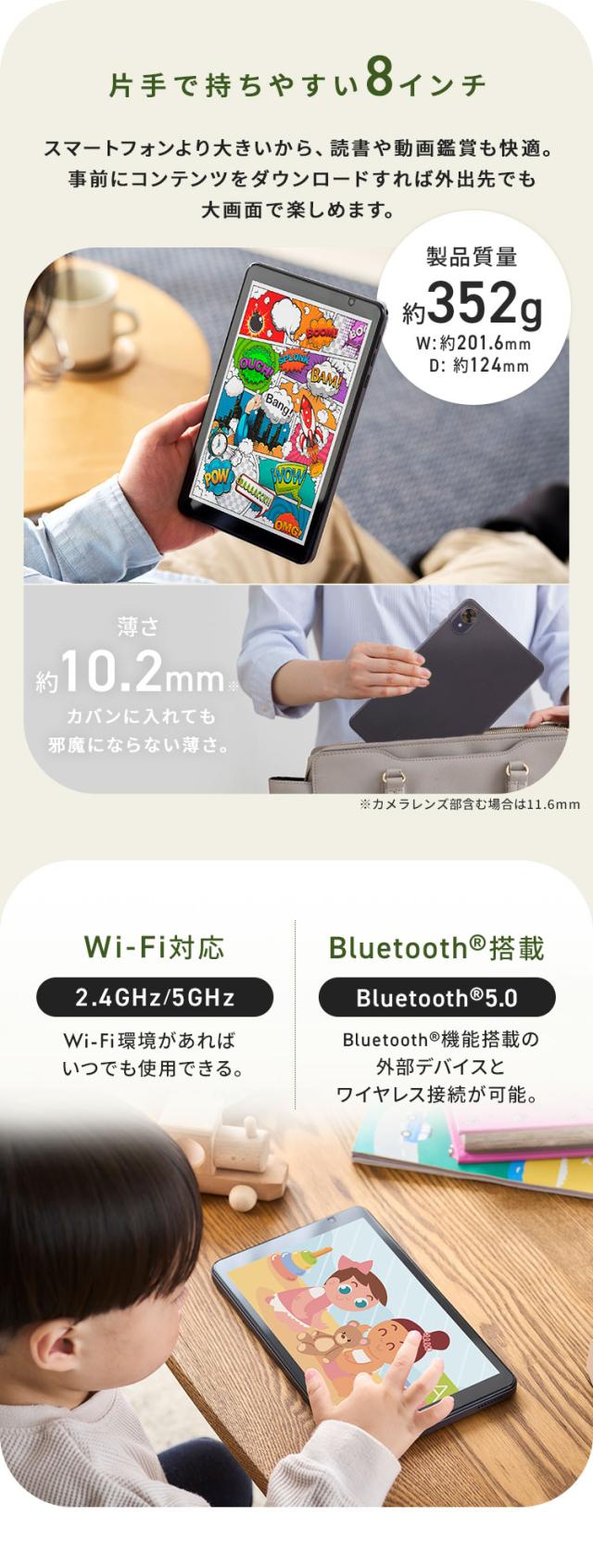(検索用:タブレット・pc・android15・アンドロイド・本体・wi-fiモデル・8インチ・子供・動画・電子書籍・読書・映画・雑誌・漫画・マンガ・ストレージ・64GB・Bluetooth搭載・4000mAH・保護フィルム付き・シンプル・簡単操作・初心者・キッズ・4967576780339・アイリスオーヤマ)