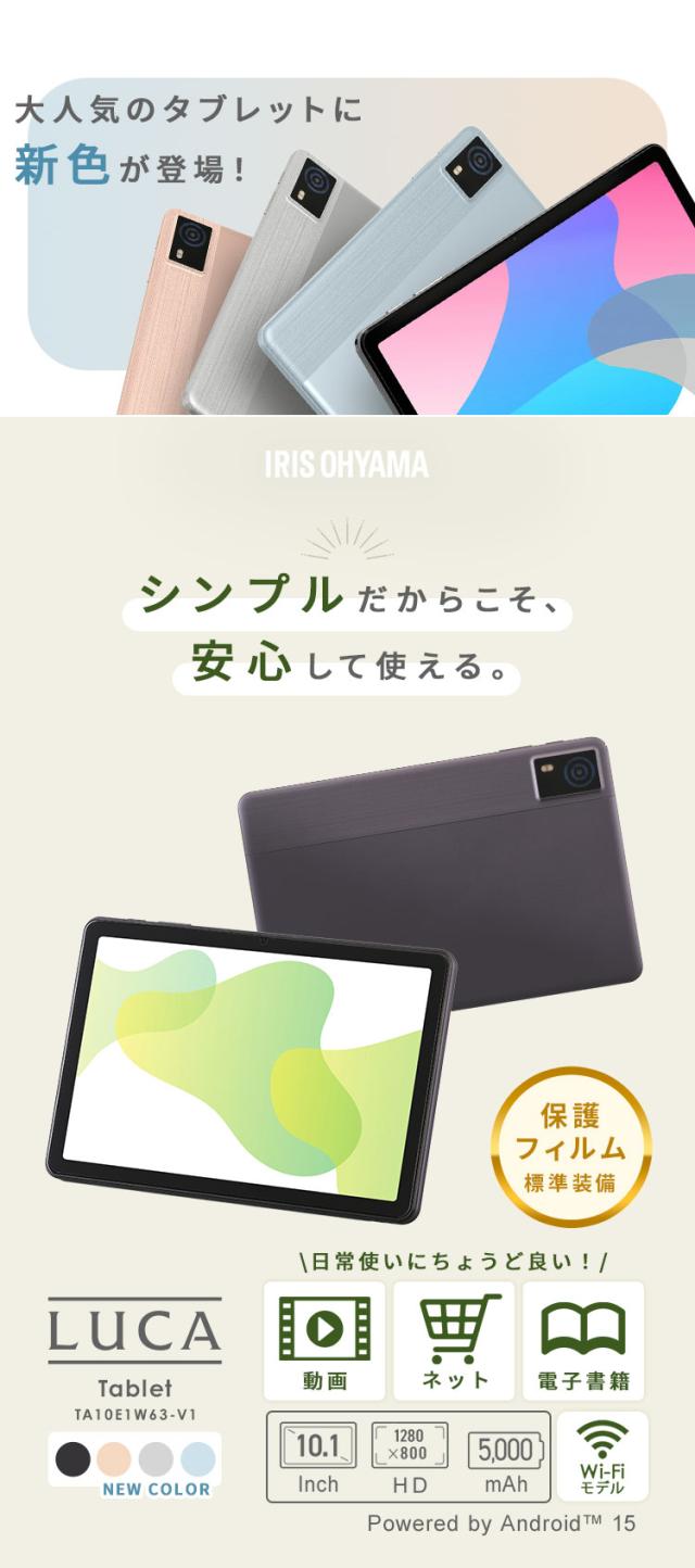 【選べるカラー】タブレット pc 10.1インチ android15 アンドロイド 本体 wi-fiモデル 子供 動画 電子書籍 読書 映画 雑誌 漫画 64GB Bluetooth搭載 4,,000mAH 保護フィルム付き 簡単操作 初心者 アイリスオーヤマ TA10E1W63-V1H *