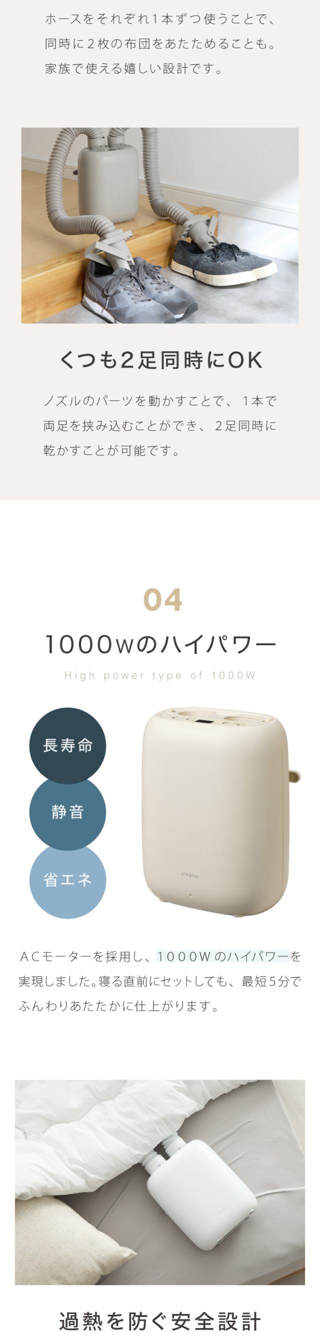 布団乾燥機 ツインノズル シューズドライヤー simplus ダニ退治 コンパクト 消臭 アロマ カビ ダニ ふとん乾燥機 くつ乾燥 梅雨 湿気対策 【メーカー保証1年】