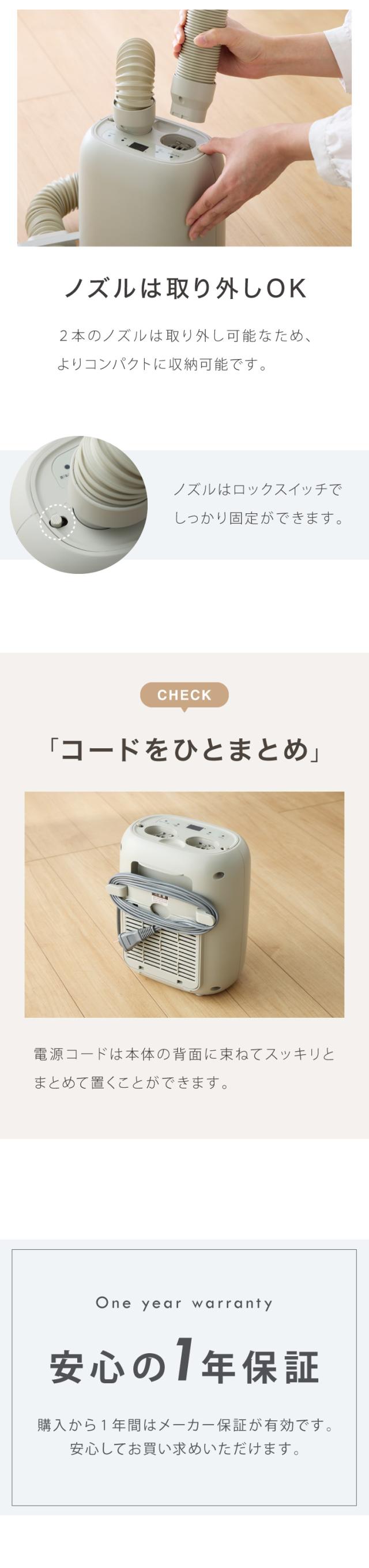 2本のホースで広範囲に温風を送り、布団や衣類を均一に乾燥させます。