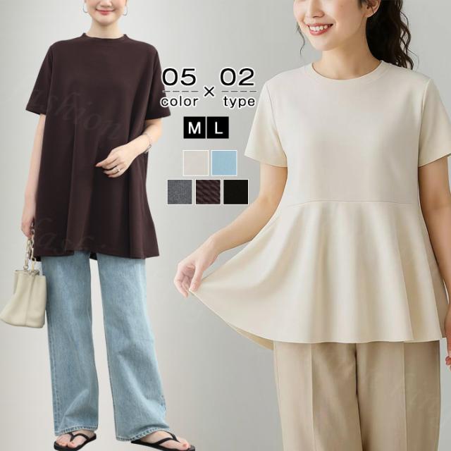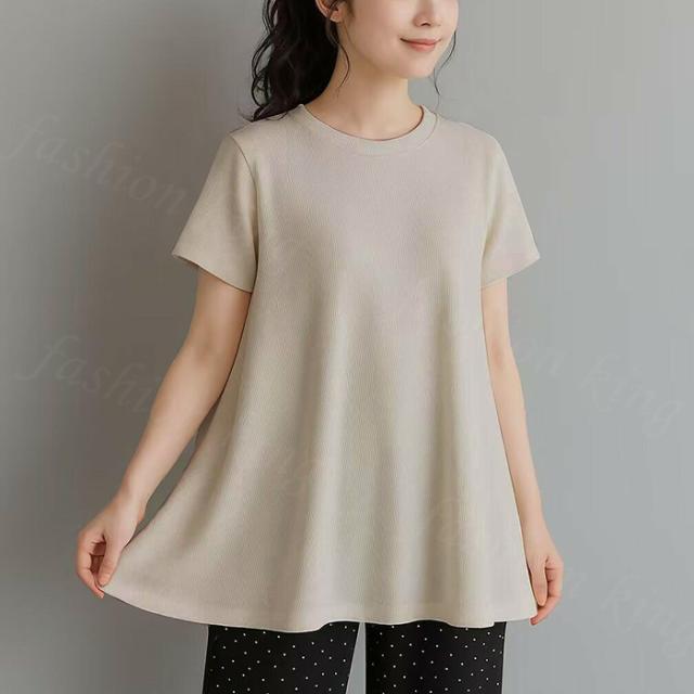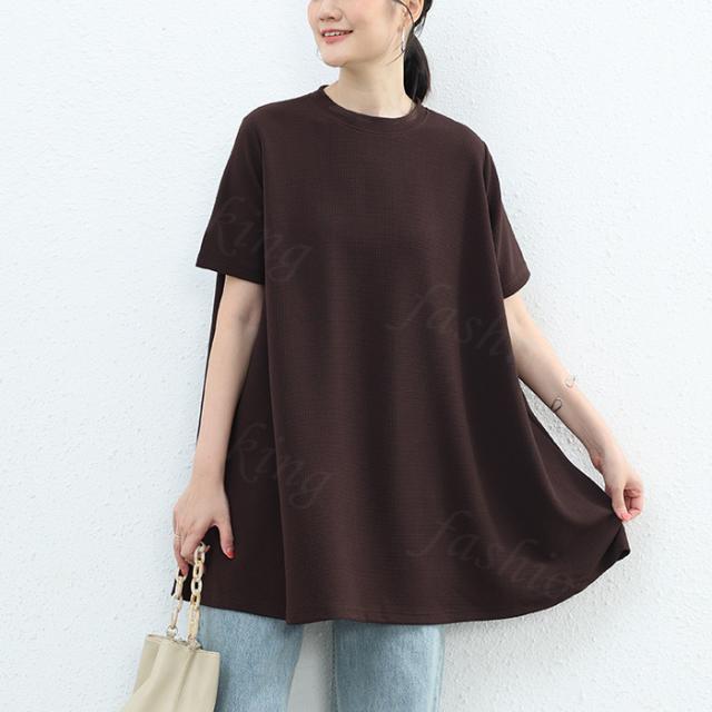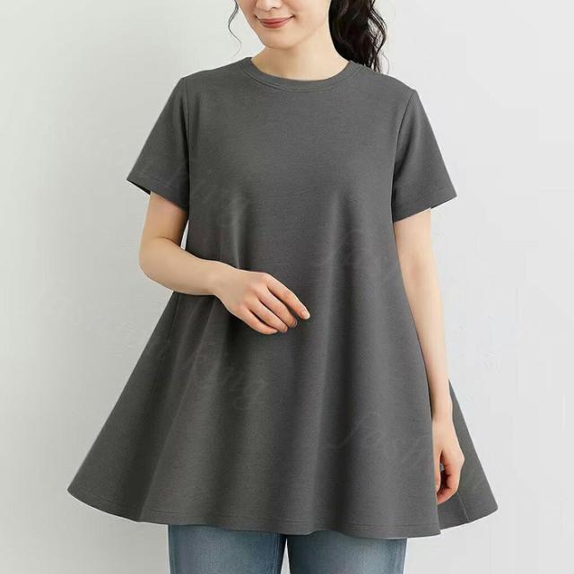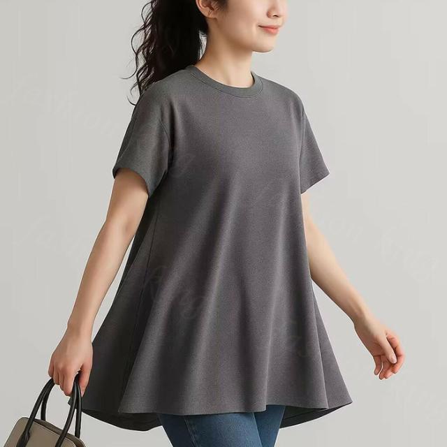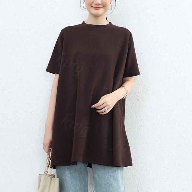 <1点1,750円!クーポン利用で>ロングTシャツ 新作 送料無料 無地 シンプル 半袖 体型カバー可愛い 韓国風 無地 肌触りいい レディース 半袖Tシャツ トップス カットソー カジュアル ゆったり 吸汗