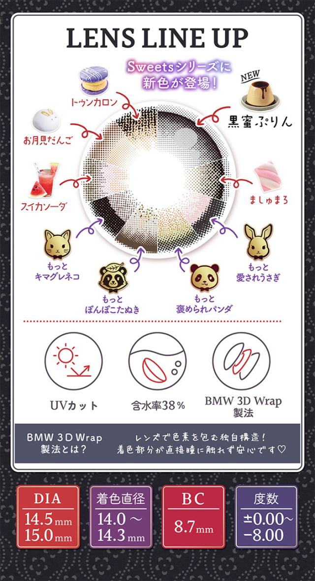 【商品詳細】 ●カラー:黒蜜プリン ●直径:15.0mm ●着色直径:14.2mm ●ベースカーブ:8.7mm ●含水率:38% ●販売度数:0.00〜8.00 ●付属品:レンズ3枚 ●使用期限:開封後1ヶ月 ●承認番号:22900BZX00215000 【区分】高度管理医療機器 【製造国】台湾 【製造販売元】Pegavision Japan株式会社 【販売元】株式会社Wscale 【広告文責】株式会社トクダ TEL:06-6796-7555 【高度管理医療機器販売業許可】 第23N00119号 ■注意事項■ ●コンタクトレンズは高度医療管理機器です。 必ず眼科医の検査・処方を受けてお求めください。 ●商品の欠陥や不良など当社原因による場合には、返品・交換を受け付けさせていただきます。 商品到着後、5日以内にお電話ください。 なお、衛生用品の為、お客様都合による返品・交換は受け付けておりませんので、ご了承ください。 ●当店では、コンタクトレンズに関しまして、ご注文確定後のキャンセルは承っておりません。 ●商品の発送目安は、各商品ページにあります【配送予定】をご参考くださいませ。 |