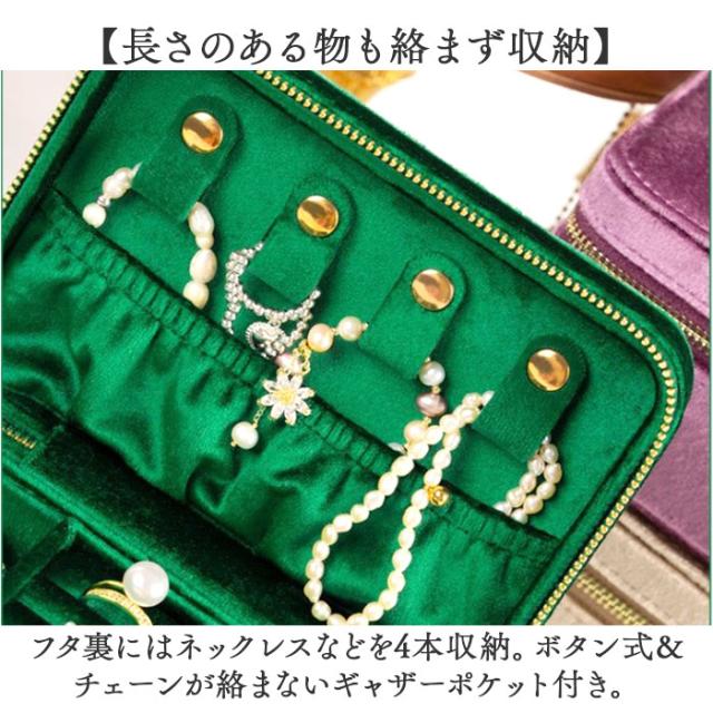 | 商品説明 | 【アクセサリーをすっきり整理整頓】 ・ごちゃつかずに収納&大切に保管◎「ベロアアクセサリーケース」。 【高級感のある大人な仕上がり】 ・起毛感のあるしっとり滑らかなベロア生地。上品な光沢が、華やかなアクセサリーにマッチ♪ 【ぐるっと大きく180度オープン】 ・ダブルファスナーがラウンド型に開閉。中身を確認しやすく、出し入れもラクラク。 【お気に入りアイテムを1つに収納】 ・トレー付きの2段式。仕切りをアレンジでき、指輪やバングル、ブローチ、イヤリングをIN。 (※)トレーのリングスロット、下段メインルームの仕切りは取り外し可能です。 【長さのある物も絡まず収納】 ・フタ裏にはネックレスなどを4本収納。ボタン式&チェーンが絡まないギャザーポケット付き。 【傷付きを防ぐ柔らか内張り】 ・内張りも柔らかなベロア生地。大切なアクセサリーを傷や衝撃からガード◎ 【置き場所に困らないコンパクトさ】 ・手に取りやすく場所を取らないサイズ感。長期の旅行や帰省など、持ち運びもOK。 【大切な方へのギフトにもおすすめ】 ・飽きが来ず長く愛用できるデザインが魅力。贈り物としてもおすすめ♪ 【収納スペース】 ・トレー(上段):リングスロット×5(仕取り外し可能)、フリースペース×1 ・メインルーム(下段):フリースペース×8(仕切りは取り外し可能) ・フタ裏:スナップボタン式ネックレス掛け×4(下に1つギャザーポケット付き) |