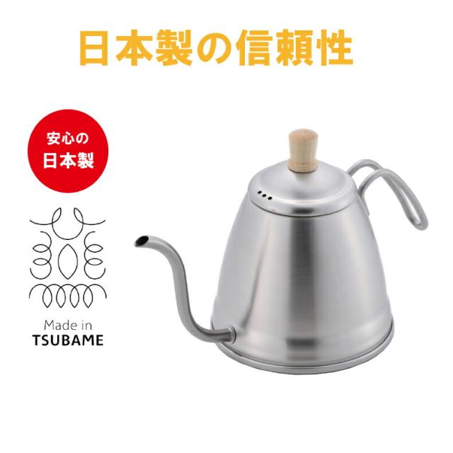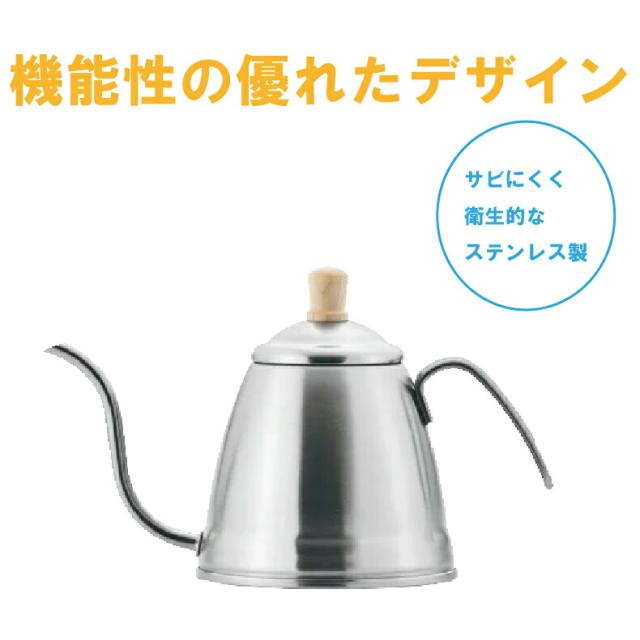 【★】サビに強く衛生的なステンレス製・細口でそそぎやすいシンプルで上品なドリップポット。