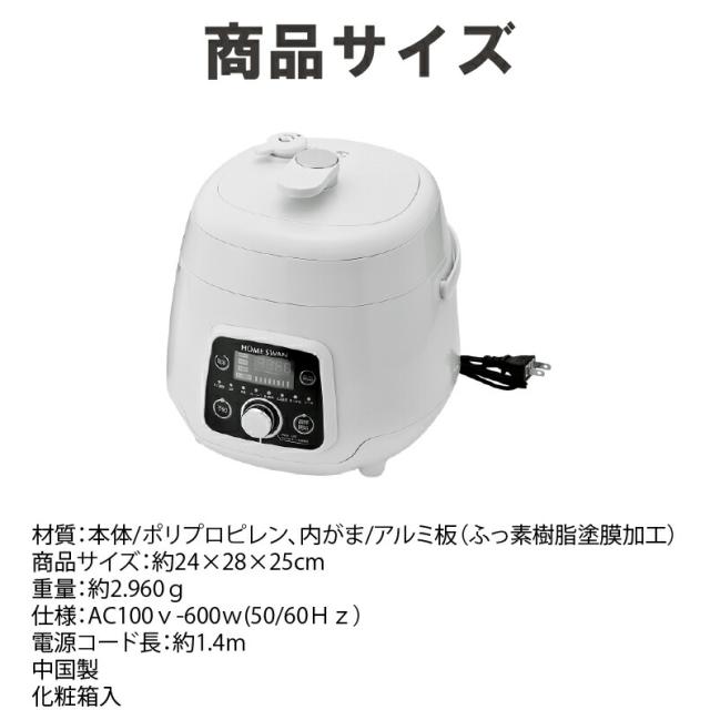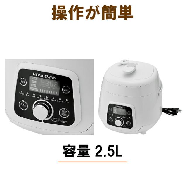 電気圧力鍋 2.5L 圧力鍋 電気 ホームスワン コンパクトタイプ レシピ付き お手入れ簡単