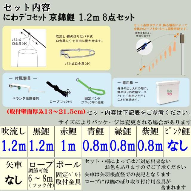 鯉のぼり こいのぼり おしゃれ お洒落 庭 屋外 にわデコセット 京錦鯉 1.2m 8点セット オシャレ