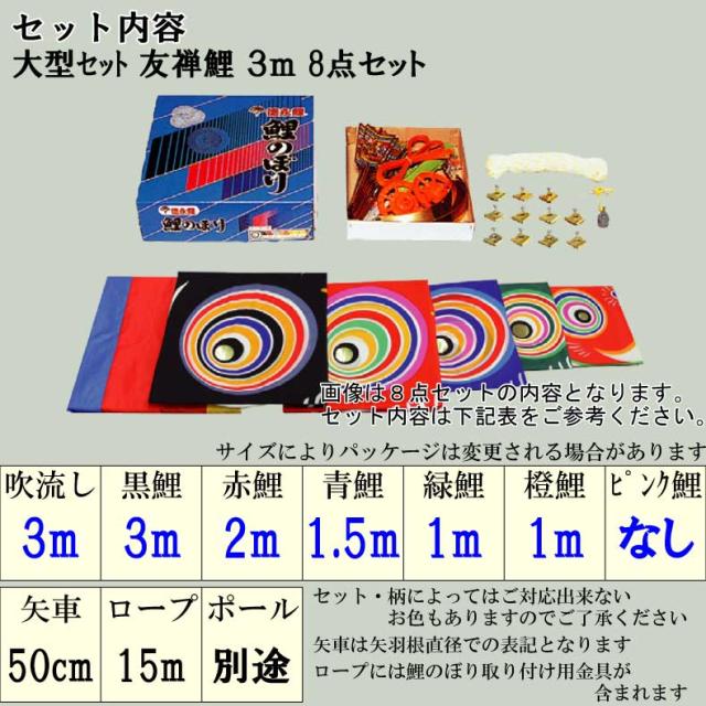 鯉のぼり 大きい こいのぼり おしゃれ お洒落 庭 屋外 大型セット 友禅鯉 3m 8点セット オシャレ