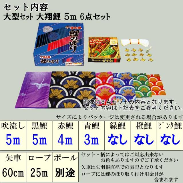鯉のぼり 大きい こいのぼり おしゃれ お洒落 庭 屋外 大型セット 大翔鯉 5m 6点セット オシャレ
