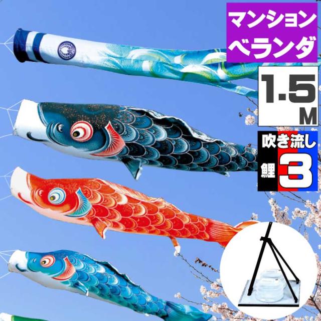 鯉のぼり こいのぼり ベランダ おしゃれ お洒落 マンション ベランダ用 屋外 プレミアムベランタ゛スタンドセット 風舞い鯉 1.5m 6点セット オシャレ