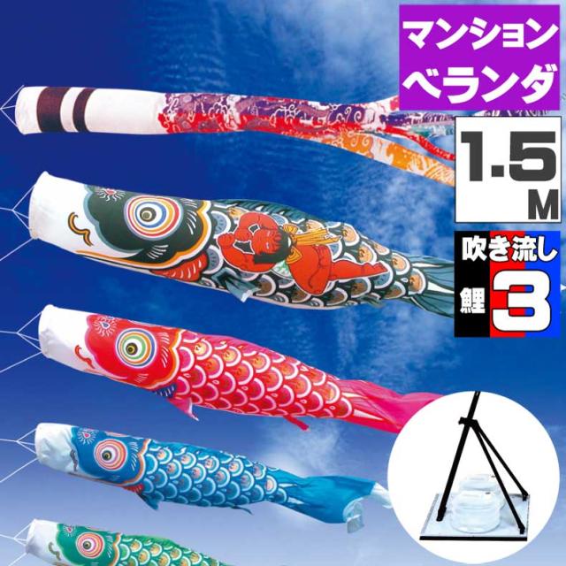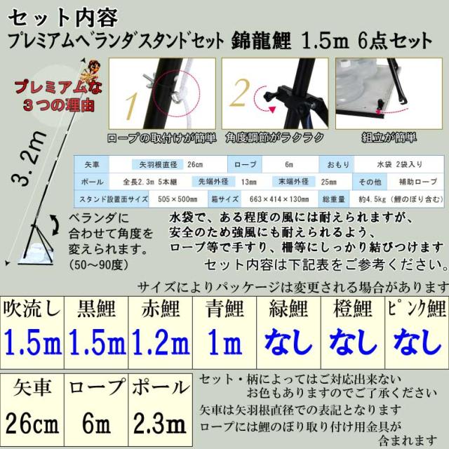 鯉のぼり こいのぼり ベランダ おしゃれ お洒落 マンション ベランダ用 屋外 プレミアムベランタ゛スタンドセット 錦龍鯉 1.5m 6点セット オシャレ