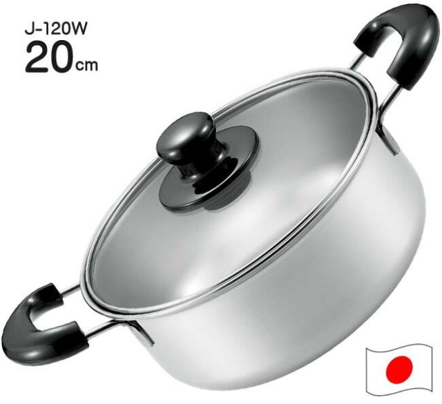 おすすめ 両手鍋20cm J-20W (ジェイ)ステンレス製 日本製 オール熱源対応 おすすめ