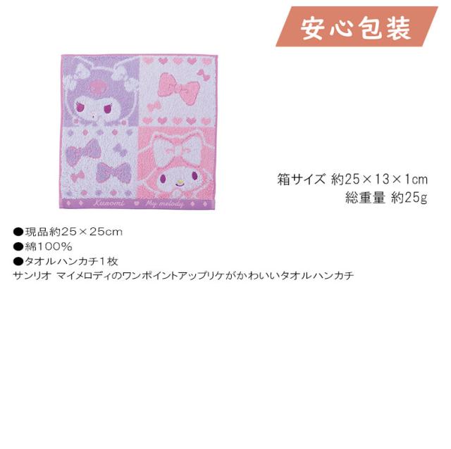サンリオ マイメロディのワンポイントアップリケがかわいいタオルハンカチ
