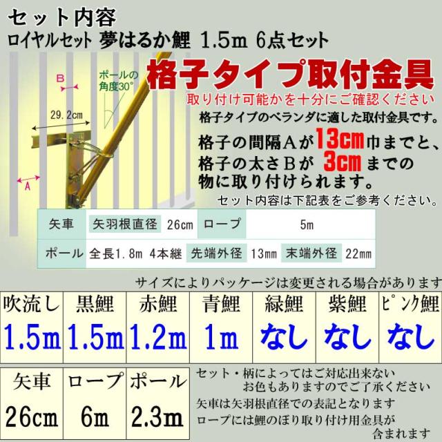 鯉のぼり こいのぼり ベランダ おしゃれ お洒落 マンション ベランダ用 屋外 ロイヤルセット 夢はるか鯉 1.5m 6点セット オシャレ