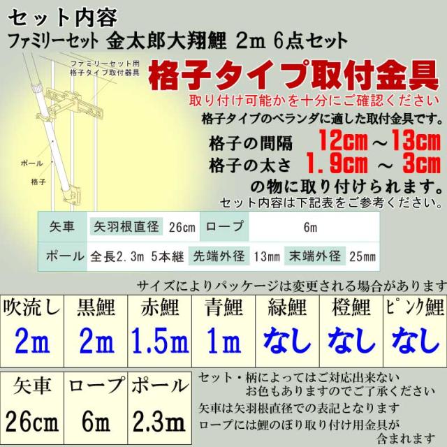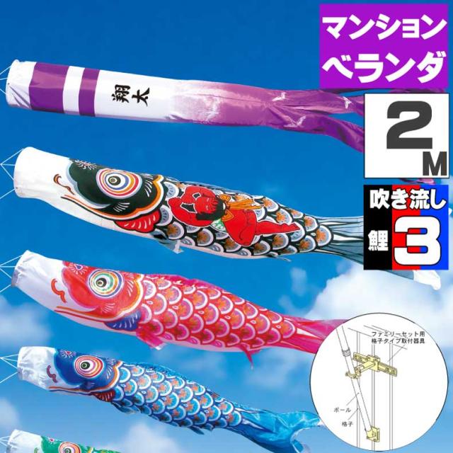 鯉のぼり こいのぼり ベランダ おしゃれ お洒落 マンション ベランダ用 屋外 ファミリーセット 金太郎大翔鯉 2m 6点セット オシャレ