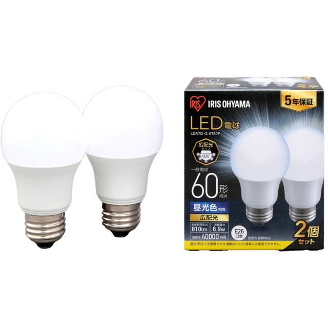 LED電球 E26 広配光 60形相当 昼光色 LDA7D-G-6T62P 1組(2個) アイリスオーヤマ 810lm 密閉形器具対応