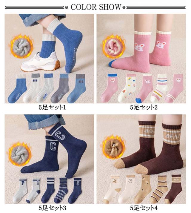 冬 キッズ 靴下 キッズ 5足セット 送料無料 5足 セット 靴下 起毛 冬用 シンプル 厚手 男の子 女の子 靴下 ソックス くつ下 5色 ベビー ソックス 綿 コットン くつ下 男の子 女の子 キッズ靴下 ベビーソックス ベビー靴下 クルー丈