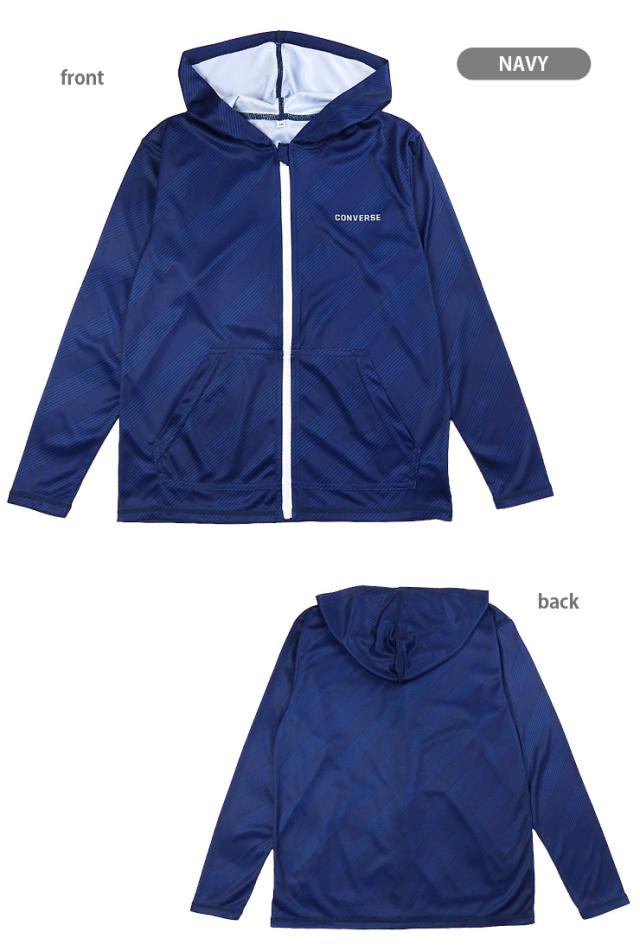 【メール便送料無料】CONVERSE 長袖 ラッシュガード 水着 キッズ ジュニア 140 150 160 男の子 ブラック ネイビー 793483 コンバース フード付き ジッパー ジップアップ フルジップ ファスナー UPF50+ UVカット 紫外線防止 ストライプ ロゴ 黒 紺 sw3726