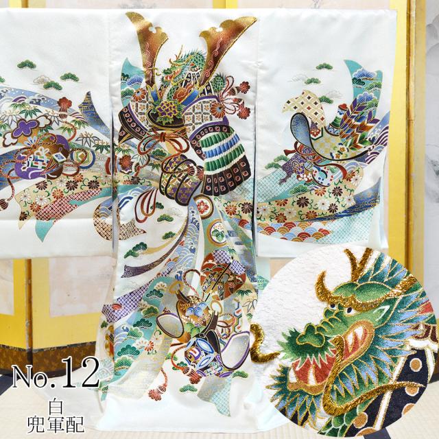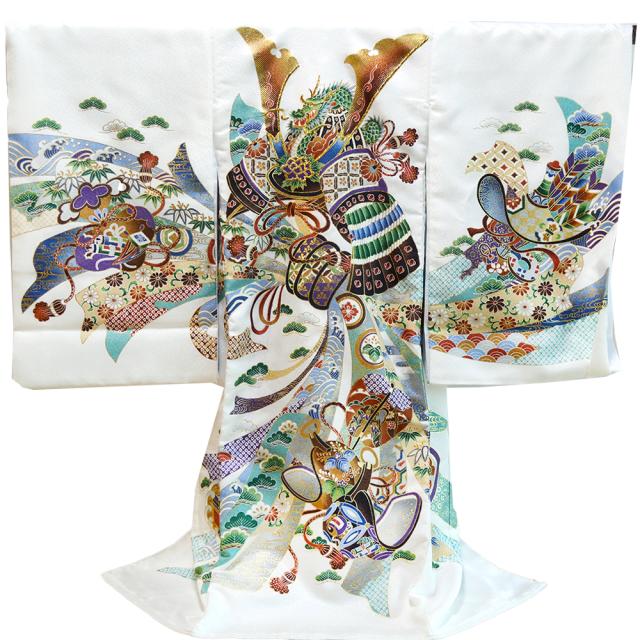 【レンタル】 お宮参り 着物 男の子 産着 長襦袢付 12(白・兜軍配) 【 初着 祝着 産着 男の子 子供